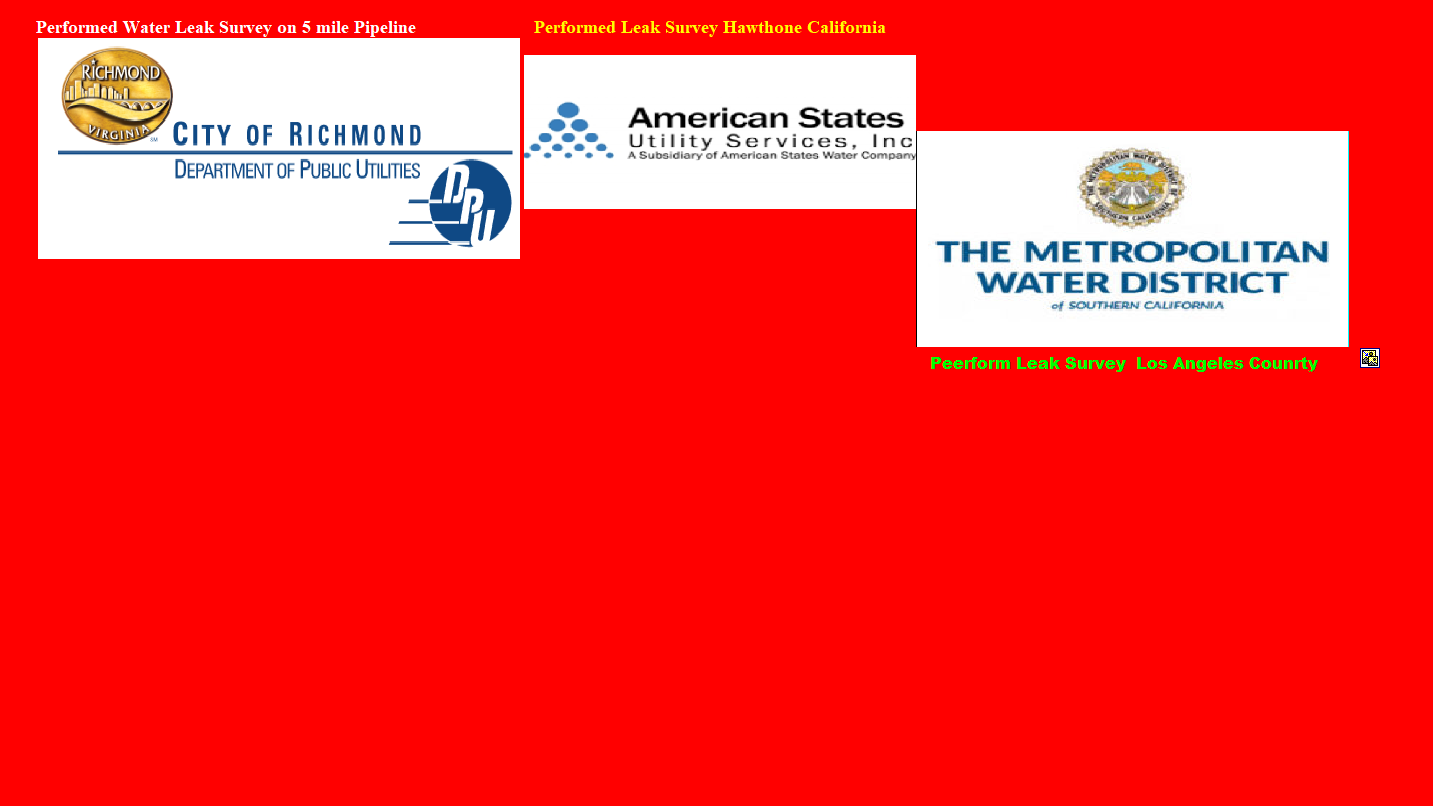 · Water Distribution Leak Surveys · Water Treatment Plant Surveys · Municipal Water Loss Audits · Private Water Systems Leak Surveys · Sewer Leak Surveys & Sewer Line Location